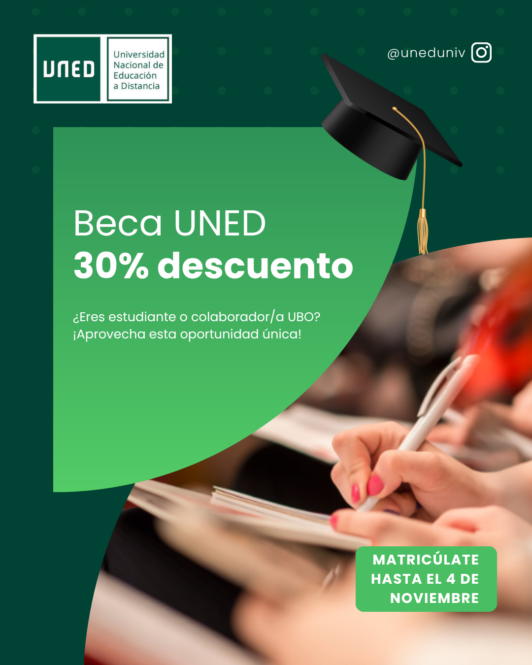La Universidad Nacional de Educación a Distancia (UNED) te ofrece un 30% de descuento en todos sus másteres —solo hasta el 4 de noviembre.